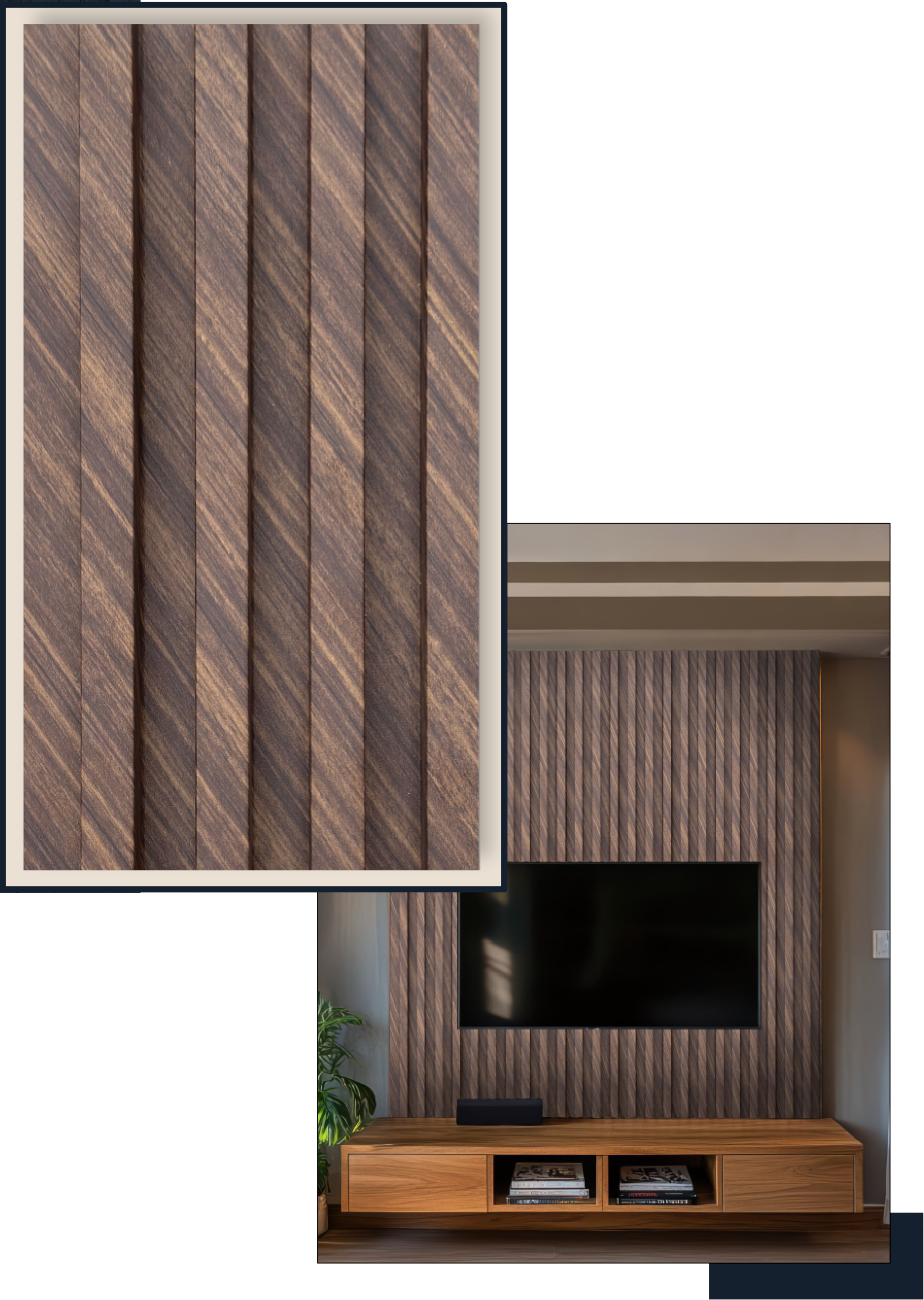 WPC Louvers are an elegant blend of wood and polymer, designed to bring warmth, style, and durability to your interiors. These louvers offer the natural texture of wood with the long-lasting strength of composite material, making them ideal for both modern and classic spaces. Resistant to moisture, termites, and fading, WPC Louvers are perfect for accent walls, ceilings, and exterior façades. With their rich finishes and versatile designs, they add a sophisticated touch that enhances both the beauty and value of any space.